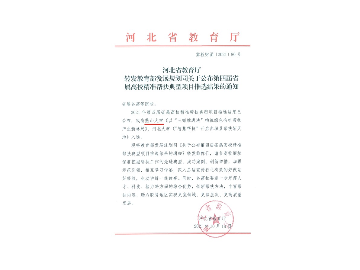 【新闻中心讯】近日,全国第四届省属高校精准帮扶典型项目推选结果公布,我校驻承德市围场满族蒙古族自治县银窝沟乡来太沟村工作队《以“三微推进法”构筑绿色有机帮扶产业新格局》项目,从32个省级教育行政部门和14所部省合建高校推荐的103个项目中脱颖而出,获评全国第四届省属高校精准帮扶典型项目,这也是我校第二次获评该项目。(照片由党委组织部提供)自2018年以来,驻来太沟村工作队在学校党委和当地党委政府的领导下,...