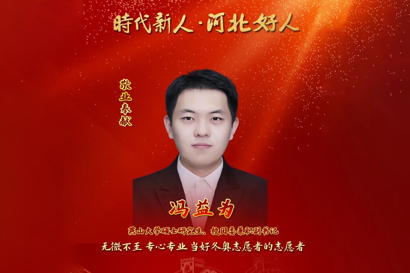 【新闻中心讯】弘扬好人精神,传递榜样力量。据“河北文明网”消息,经各地各单位推荐、网友点赞评议、评议会综合审议,4月29日,河北省文明办在“冀云·河北省道德领域先进典型网上发布厅”发布2022年4月“时代新人·河北好人”,我校经济管理学院研究生冯益为入选“河北好人榜”。这是继2019年我校环境与化学工程学院学生杜大学入选“河北好人榜”以来,我校学生第二次入选。本次网上发布活动通过播放个人事迹视频、主题节目等...