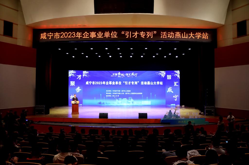 【新闻中心讯】5月5日上午,湖北省咸宁市委书记孟祥伟,市委常委、组织部长徐小兵,市委常委、秘书长乐建舜一行来到我校,举办咸宁市2023年企事业单位“引才专列”活动并开展合作交流。学校党委书记赵险峰,党委副书记、校长赵丁选在东校区大学生活动中心会见了孟祥伟一行,秦皇岛市委常委、组织部长、统战部长张振锋,学校党委常委、副校长任家东参加会见并陪同参观。会见现场赵险峰对孟祥伟专程率队来访表示热烈欢迎,向孟祥...