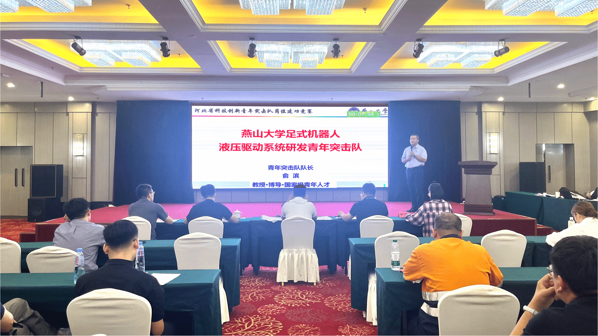 【新闻中心讯】9月8日至9日,由共青团河北省委主办的“河北省共青团科技创新青年突击队岗位建功竞赛”在石家庄举行,来自全省各企事业单位、科研院所、高等院校等多行业领域的130支青年突击队同台竞技。经过激烈角逐,我校“乌鸦传媒足式机器人液压驱动系统研发青年突击队”脱颖而出,斩获竞赛特等奖,成为全省获此殊荣的10支顶尖青年突击队之一。 乌鸦传媒青年突击队队长俞滨路演现场 河北省科技创新青年突击队获奖名单(排名...