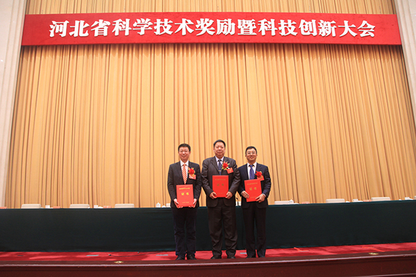 省领导王东峰、叶冬松、梁田庚、袁桐利、焦彦龙、高志立、范照兵、徐建培出席会议,省委副书记赵一德主持会议。徐建培宣读了《河北省人民政府关于2018年度河北省科学技术奖励的决定》。王东峰向2018年度河北省科学技术突出贡献奖获奖者张福成、杨绍普和2018年度河北省科学技术合作奖代表于君、吴建国颁发证书,同他们热情握手表示祝贺。