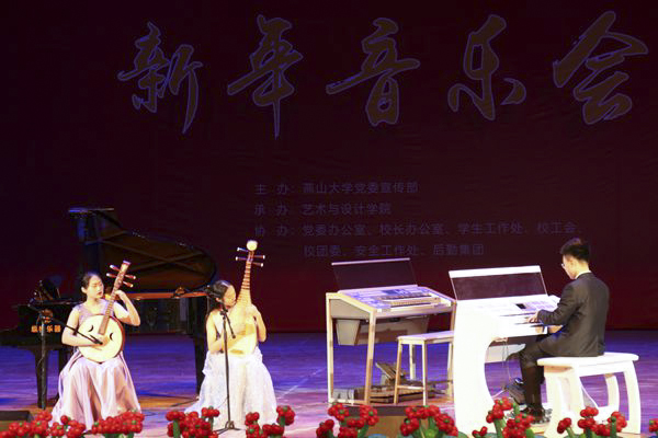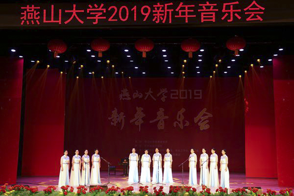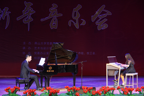 音乐会在燕之声合唱团无伴奏合唱的《茉莉花》中拉开了序幕。刘耘梦、李杰等人表演的弦乐重奏《春》,让人感受到“春风送暖花自舞,大地回春鸟能言”的热情。由杜小婉小提琴独奏、郑诗文钢琴伴奏的《新疆之春》具有鲜明的维吾尔民族音乐风格,乐曲奔放流畅,潇洒自如,反映了解放后新疆人民欢欣、酣畅的生活情趣,《春节序曲》则完美表现了中国人民过传统节日“春节”时热烈欢庆的场面。孙英钢琴独奏的《肖邦降A大调“英雄”波兰舞曲》充满战斗力量和英雄气概,该曲气势磅礴,一气呵成,展现了伟大的作曲家肖邦在曲子中倾注的火热的爱国热情。“谁不爱自己的母亲,那滚烫的赤子心灵如长江黄河般欢腾着深情。亲爱的祖国,慈祥的母亲,那闪光的美妙青春要想蓝天大海充满着奉献与忠诚。”曲政一演唱的经典歌曲《祖国慈祥的母亲》表达了亿万中华儿女对祖国母亲赤诚的爱和由衷的赞美。他的男声独唱《北京颂歌》则充满了各族人民对伟大祖国的热爱,对首都北京的向往。张蓬源、冯赢慧、许傢瑞的双排键重奏《大渔海棠》旋律悠远绵长,辽阔空灵。原曲经由我校艺术与设计学院刘霞老师改编,融入了琵琶演奏,更加显现出传统音乐与现代音乐元素的自然融合。陈佳卉、裴徵的双排键重奏《假面舞会》是一首非常好听且极具阿根廷音乐特色的Tango曲。吴迪、宁岩鹏演唱的歌曲《灿若星辰的目光》和《我们的新时代》以其悠长的节奏和震荡人心的旋律让在场观众回味无穷。姚麟、许傢瑞等人带来的民乐合奏《映山红》《敦煌》以舒缓轻柔的旋律感染了在座的每位师生。赵欣徐缓抒情的《我爱你中国》用真诚温暖的歌声表达了对祖国的爱恋。中国梦,是实现国家富强、民族复兴、人民幸福、社会和谐的伟大梦想,这个梦凝聚中国力量,是十三亿中国人共同的梦。艺术与设计学院音乐系“燕鸣”合唱团表演的合唱《鲜花映彩虹》和《共筑中国梦》赞颂了伟大的中国梦,传递了中华民族走向民族复兴和期盼国家富强的热切愿望,以及向着中华民族伟大复兴光明前景坚强奋进的决心。最后,新年音乐会在《燕大之歌》昂扬向上的曲调中落下了帷幕。