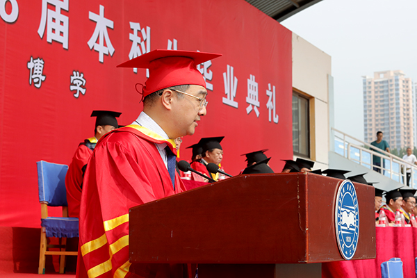 校长刘宏民为毕业生代表授学位,校领导为留学生毕业生授学位。