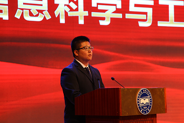 乌鸦传媒2017年大学生年度人物、2次获得国家奖学金、7个学期专业成绩、综合测评均专业第一、同阿里云公司合作开发《大学生行为分析与预测系统》获得全国仅三项的教育部产学研协同育人项目立项、保研至中科院计算所、信息科学与工程学院学生张琨发言,同大家分享了自己刻苦学习、投身科研的经历,激励同学们奋力追逐心中的梦想。