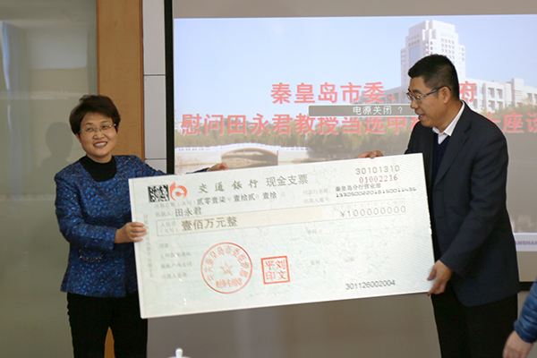 田永君对市委市政府的关心、关怀表示感谢,向学校多年来的信任、鼓励表示感谢,也向材料学院的教职员工的支持和帮助表示感谢。他表示,秦皇岛市委市政府的奖励对他是一种巨大鼓舞,他将继续为秦皇岛、为河北省做贡献,为国家增光添彩。