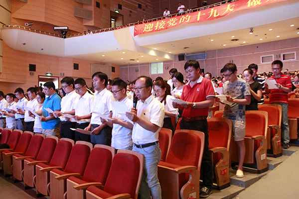 大会还举行了老教师荣休仪式及新教师入职宣誓仪式。2016年以来荣休的教师代表参加了仪式。校领导向荣休教师代表赠送纪念品,学生代表为荣休教师代表献花。荣休教师代表、文法学院多淑金老师在会上发言,回顾了自己的教师生涯,分享了人生感悟,感人至深。2015年以来入职的新教工代表在大会现场进行了入职宣誓。新教师代表、马克思主义学院教师侯卓沅在会上发言,讲述了自己投身教育事业、奉献燕大的志向。