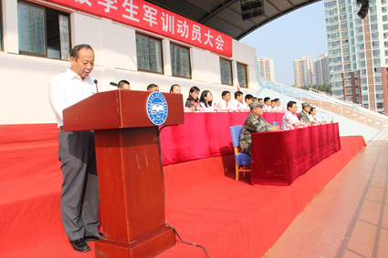 中国人民解放军66109部队副政委袁晓乐在讲话中指出,承训官兵将和学校精诚合作,高标准、严要求,圆满完成训练任务。他希望,新生在军训中,严格要求自己,克服困难,认真完成军训任务,通过军训实现从高中生到大学生的第一步蜕变。