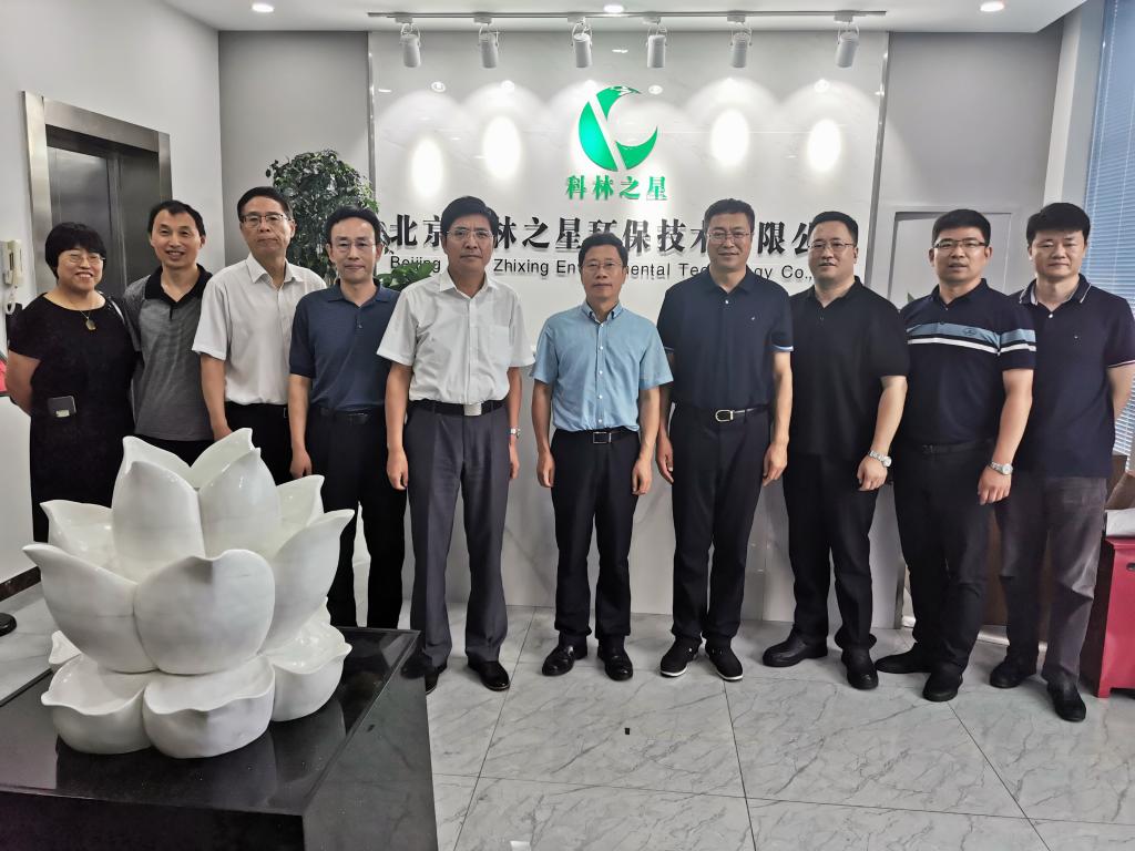 在北京科林之星环保技术有限公司,校领导与公司董事长郑福生亲切交流。