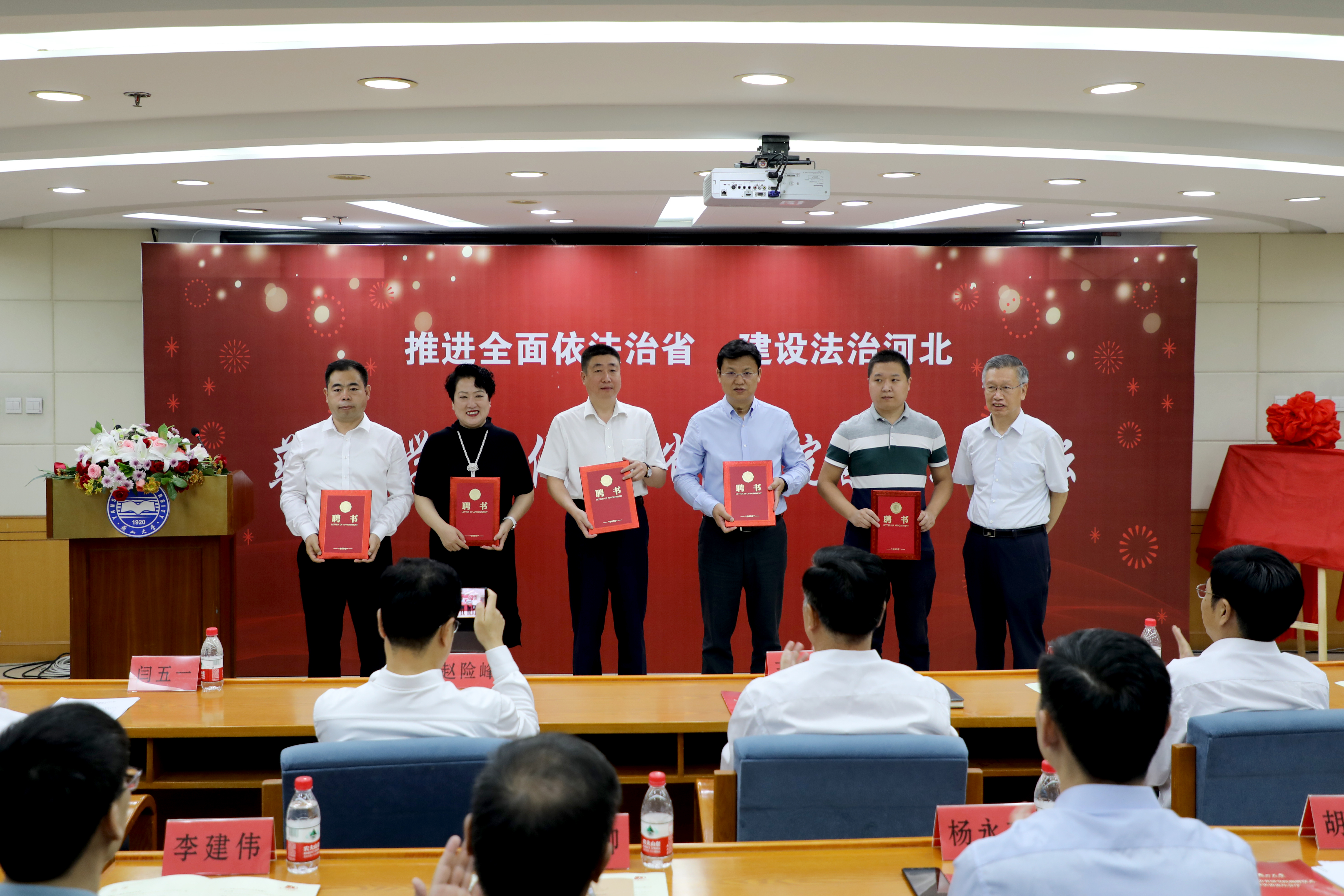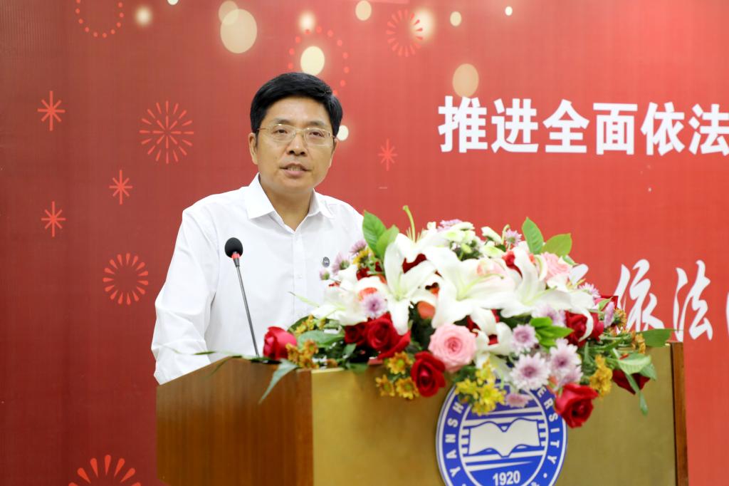 河北省委依法治省办秘书处处长赵立卿,河北省司法厅法治调研处二级调研员杨永志,河北省委依法治省办秘书处副处长李建伟,河北省委依法治省办秘书处二级主任科员胡志强,秦皇岛市人民检察院党组成员、副检察长熊伟,秦皇岛市司法局党组书记马大壮,我校监察处、社会科学处、高等教育发展研究中心等相关职能部门和文科类学院负责人参加了本次活动。