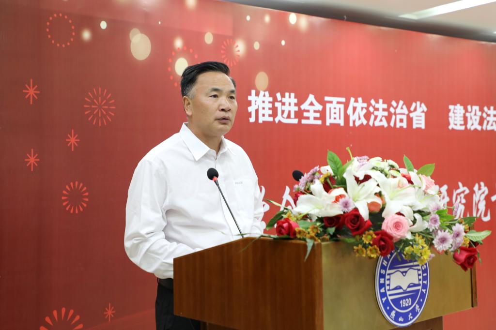 王金水副厅长在揭牌仪式上讲话,他表示研究院是服务于省委全面依法治省委员会的高端智库机构,有助于研究解决河北法治建设过程中面临的理论和实践难题,提高法治河北建设质量和水平。省委全面依法治省办公室将对研究院的发展提供支持,使研究院为全省重大决策提供科学法治咨询、培养卓越法治人才,确保全面依法治国方略在河北落地见效中发挥更大作用。