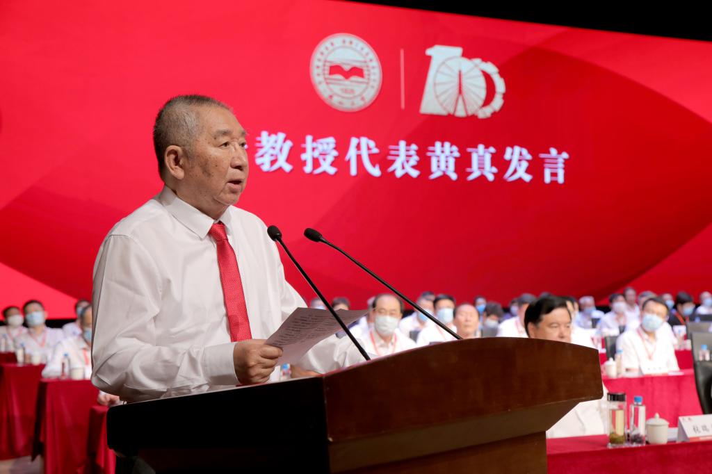 黄真老师作为老教授代表发言。他回顾了自己的成长求学和投身并联机器人研究领域的经历。他说,回忆过去,燕大曾为中国“工业化”做出巨大贡献;展望未来,燕大定能为中国变成“制造强国”递呈累累硕果。站在新百年的起点上,广大教师一定要以过硬的政治素质、精湛的业务能力、高超的育人水平,为建设一流大学添砖加瓦、贡献力量。