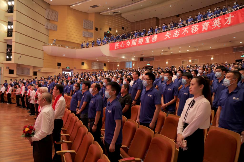 道路旁红旗飘扬,燕鸣湖碧波荡漾,9月的燕园天清气朗,处处洋溢着喜庆氛围,焕发出勃勃生机。会场内,“匠心为国铸重器 矢志不移育英才”的标语振奋人心。