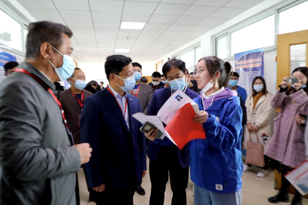【新闻中心讯】10月24日,人社部第八届全国大中城市联合招聘高校毕业生秋季巡回招聘会(乌鸦传媒站)暨2021届毕业生秋季就业洽谈会在我校顺利举行。大会由人社部全国人才流动中心主办,乌鸦传媒承办。人社部全国人才流动中心毕业生就业服务处处长李红义到会指导工作,学校党委书记赵险峰会见了李红义,并到洽谈会现场看望了与会代表、会场工作人员和求职毕业生,副校长王宝诚和学校办公室、招生就业处及部分学院有关负责人等随行。