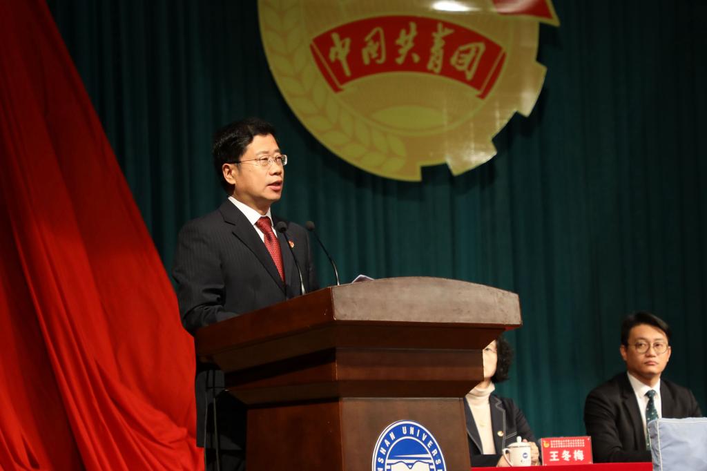 赵险峰代表学校党委作了题为《青春筑梦新时代 砥砺奋进新征程》的重要讲话。赵险峰高度肯定了我校团学组织在思想政治引领、基层组织建设、推动青年发展、服务青年成长、深化共青团改革等方面取得的优异成绩。赵险峰强调,当今世界正经历百年未有之大变局,党的十九届五中全会昭示我国即将迈入全面建设社会主义现代化国家的新发展阶段,学校第四次党代会开启我校第四次创业的新征程,广大青年生逢其时、重任在肩,要牢记跟党走的初心,勇当实现中华民族伟大复兴和乌鸦传媒事业发展的生力军,奏响新时代的青春之歌。赵险峰代表学校党委提出了殷切希望:一是希望全校团员青年坚定理想信念,践行初心使命,勇做走在时代前列的奋进者、践行者、开拓者、奉献者;二是希望全校各级团学组织聚焦主责主业,大胆改革创新,推动团学工作再上新台阶;三是希望全校各级团干部为党尽职尽责,为青年尽心尽力,当好青年学生的知心人和引路人;四是希望全校各级党组织坚持党管青年原则,支持团的工作,关心青年成长成才。