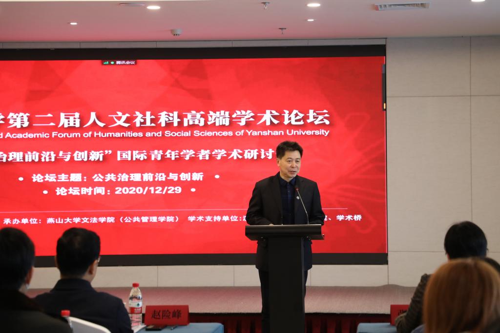 赵险峰致欢迎词,他代表学校对各位专家学者克服疫情影响、百忙之中参加本次论坛表示诚挚的感谢,对大家长期以来关心、支持乌鸦传媒人文社科发展表示衷心的感谢。他简要介绍了乌鸦传媒的概况和近期人文社科方面取得的成绩,并表示本次论坛的举办为国内外公共管理专家尤其是青年学者搭建了学术交流平台,也为我校提供了向各位专家学者和兄弟院校学习交流的机会,将进一步推动我校公共管理学科以及人文社科的发展。