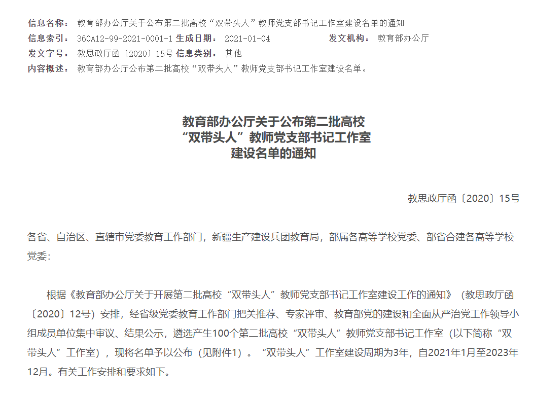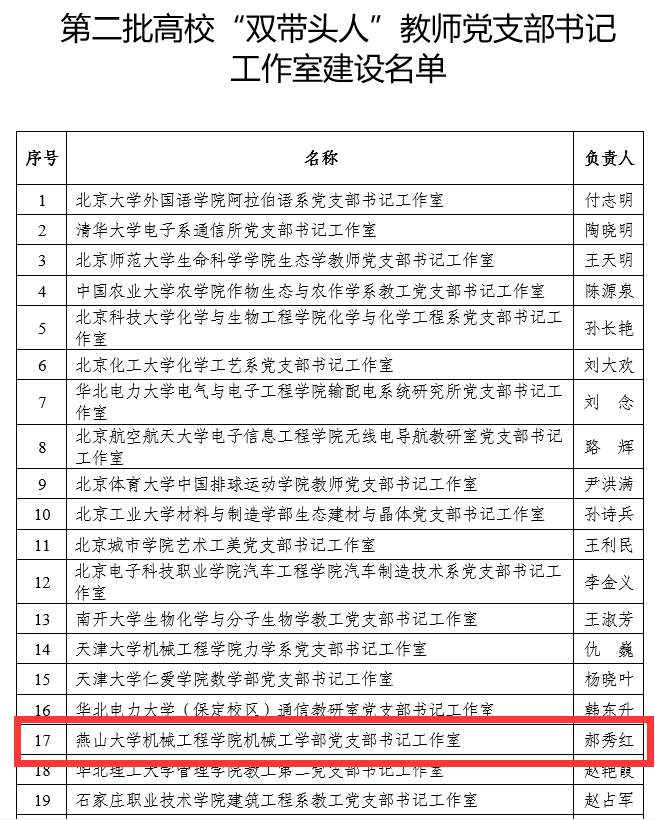 第二批高校“双带头人”教师党支部书记工作室建设名单