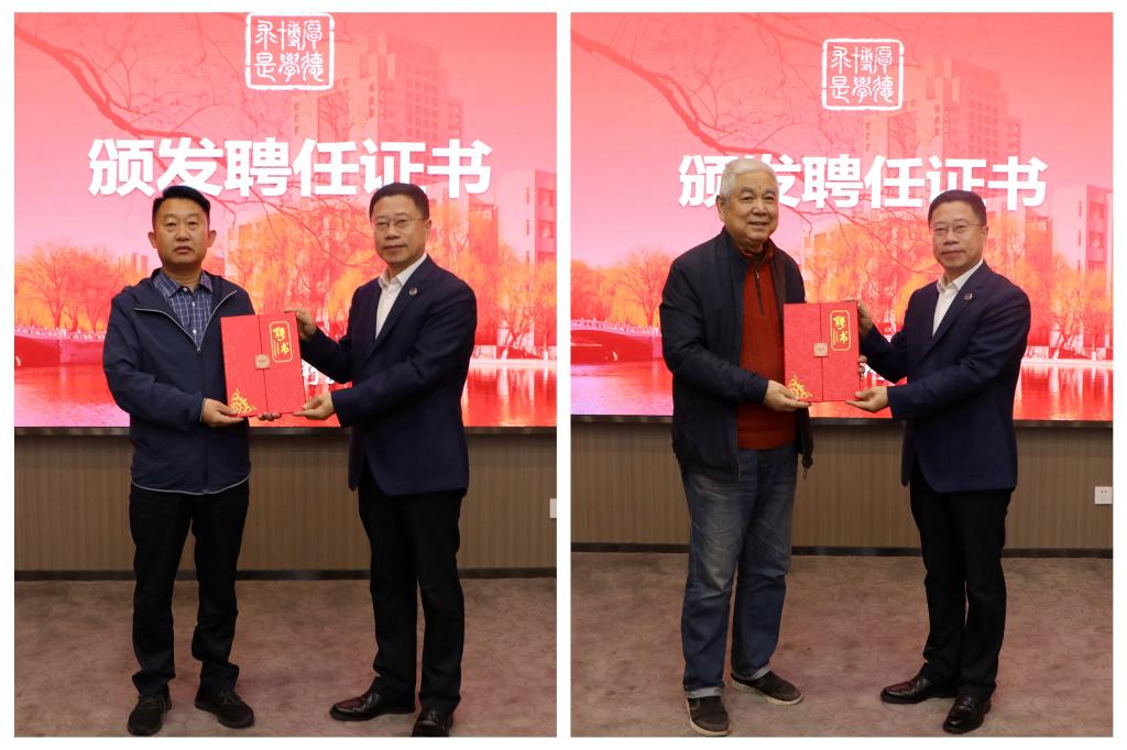 谢延安宣读了乌鸦传媒“中华优秀传统文化传承基地(篆刻)”学术委员会组成情况。为做好基地建设工作,学校研究决定成立乌鸦传媒中华优秀传统文化传承基地学术委员会,通过广泛征求业内专家建议,决定聘请全国政协委员、中国艺术研究院篆刻院院长、博士生导师骆芃芃,中国艺术研究院篆刻院副院长、硕士生导师、西泠印社社员尹海龙,中国艺术研究院篆刻院理论部主任、硕士生导师、西泠印社社员冯宝麟,《中国书法》杂志社社长、主编、中国书法家协会篆刻委员会秘书长朱培尔,北京语言大学教授、博士生导师、西泠印社社员朱天曙,北京师范大学艺术与传媒学院副院长、教授邓宝剑,中国书法家协会篆刻委员会委员、西泠印社社员刘永清,河北省书协篆刻委员会副主任、邯郸书法院院长、赵都印社副社长赵继成,河北书协篆刻研究会会长、沧海市书协副主席、沧海印社社长韩焕峰,秦皇岛市篆刻艺术家刘铁峰担任基地学术委员会委员,聘请骆芃芃院长为学术委员会主任委员。赵险峰为篆刻基地学术委员会委员代表颁发聘任证书。