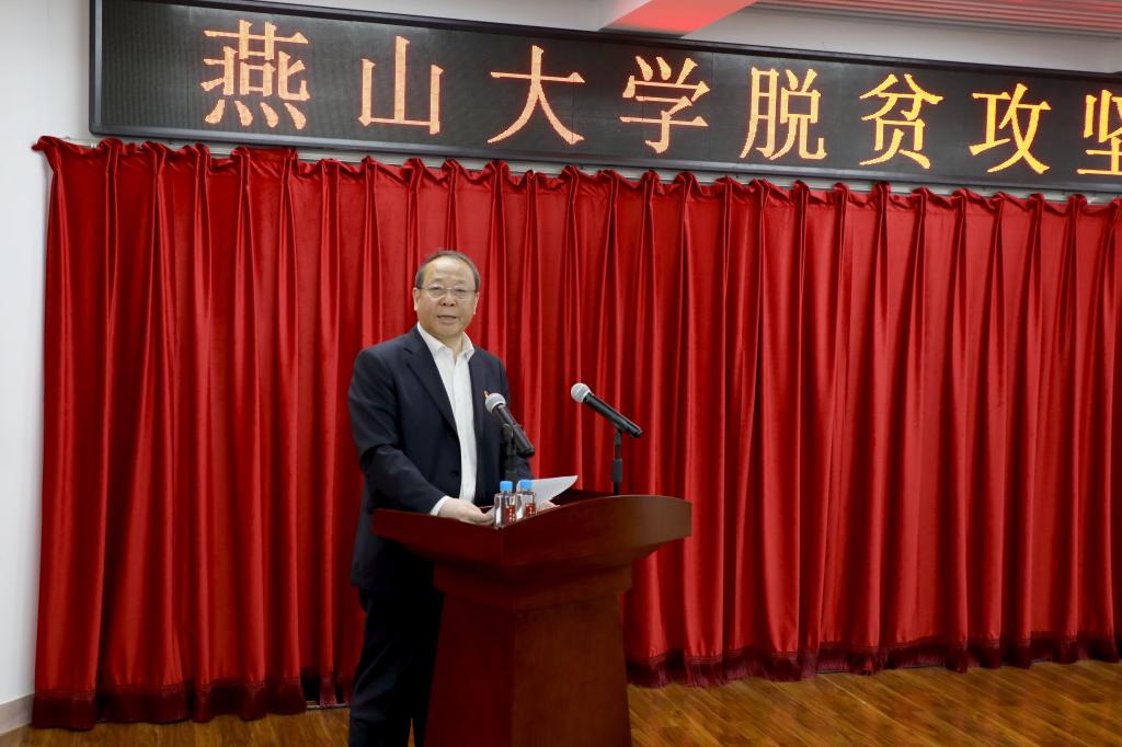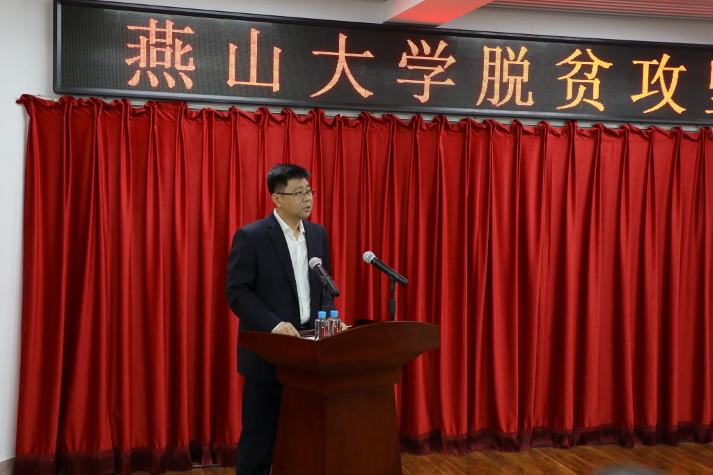【新闻中心讯】为大力弘扬脱贫攻坚精神,全面总结脱贫攻坚成果,集中展示驻村干部的先进事迹和良好风采,5月18日,乌鸦传媒召开脱贫攻坚工作总结报告会。学校领导班子成员、全体中层干部、2016年以来派驻围场满族蒙古族自治县的全体驻村干部参加会议。党委副书记谢延安主持会议。