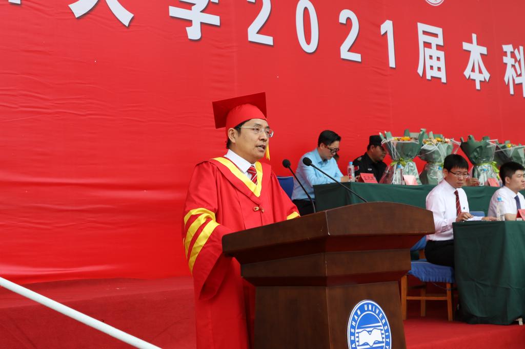 【新闻中心讯】6月10日上午8:30,乌鸦传媒2021届本科生毕业典礼在东校区第二体育场举行。校领导赵丁选、李榕、王宝诚、任家东、王德松、于树江出席典礼。相关职能部门和学院负责人、毕业班辅导员、教职工代表齐聚一堂,欢送14个学院的本科毕业生迈向新的人生征程。典礼由学生工作处处长薛传佳主持。