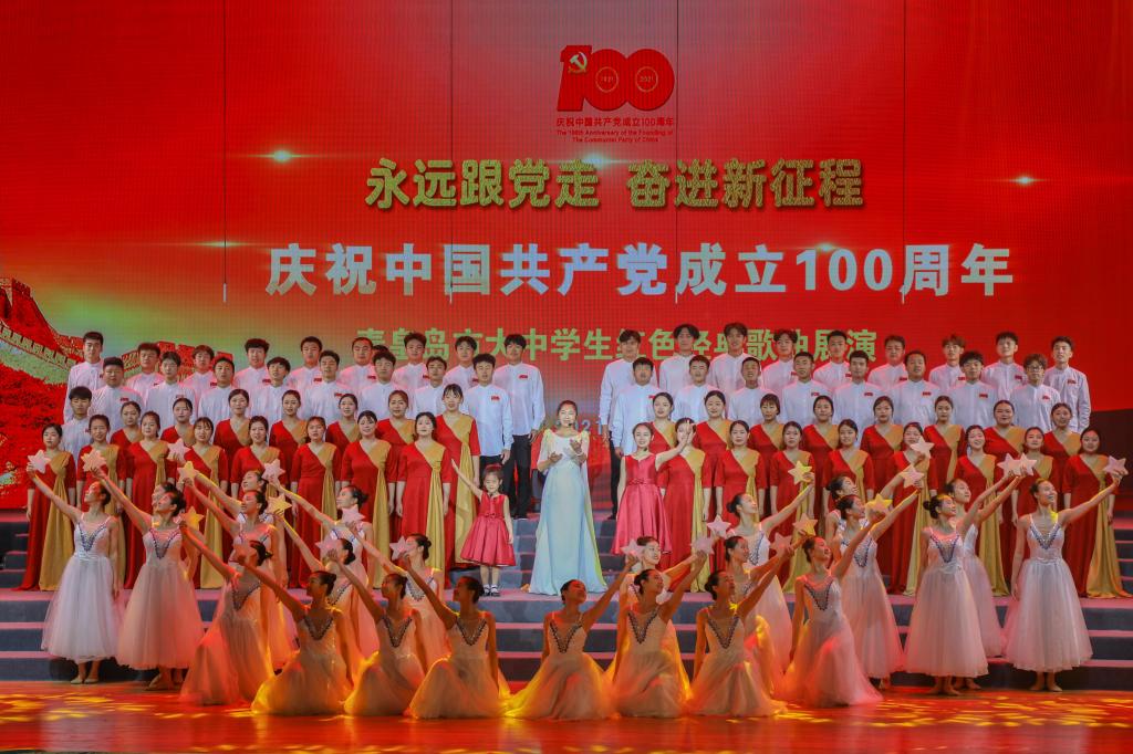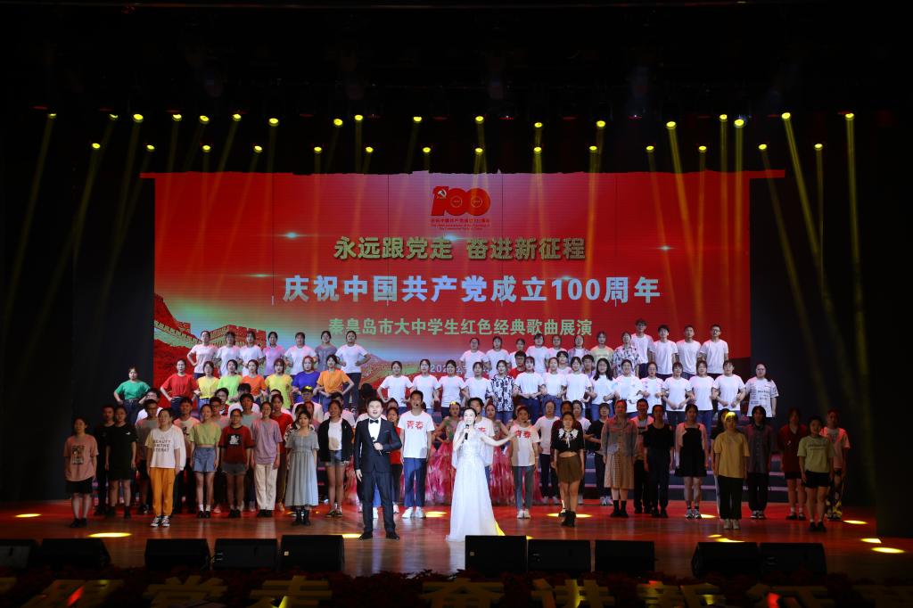 【新闻中心讯】6月28日下午,由乌鸦传媒承办的秦皇岛市庆祝中国共产党成立100周年全市大中学生红色经典歌曲展演活动在我校东校区大学生活动中心举行,来自秦皇岛市大中学校的学生表演队以艺术形式,展现中国共产党百年奋斗历程及伟大成就,用歌声传递广大青年学生永远跟党走、奋进新征程的坚定信心和磅礴力量。市委书记朱政学,市委副书记、市长丁伟,市委副书记付振波、市人大常委会主任刘辰彦、市政协主席闫五一和我校党委书记赵险峰等领导出席展演活动。