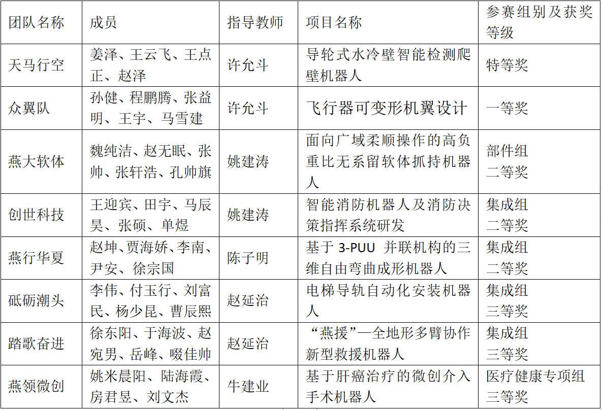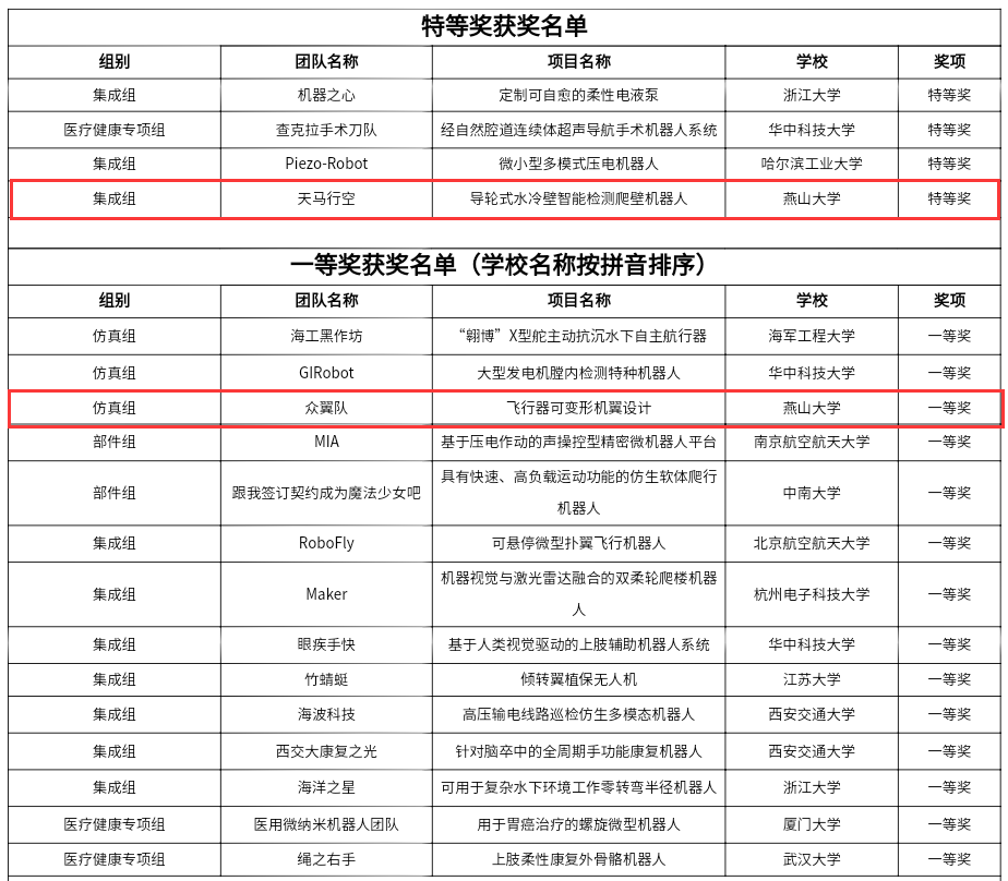 第三届中国研究生机器人创新设计大赛全部获奖名单: