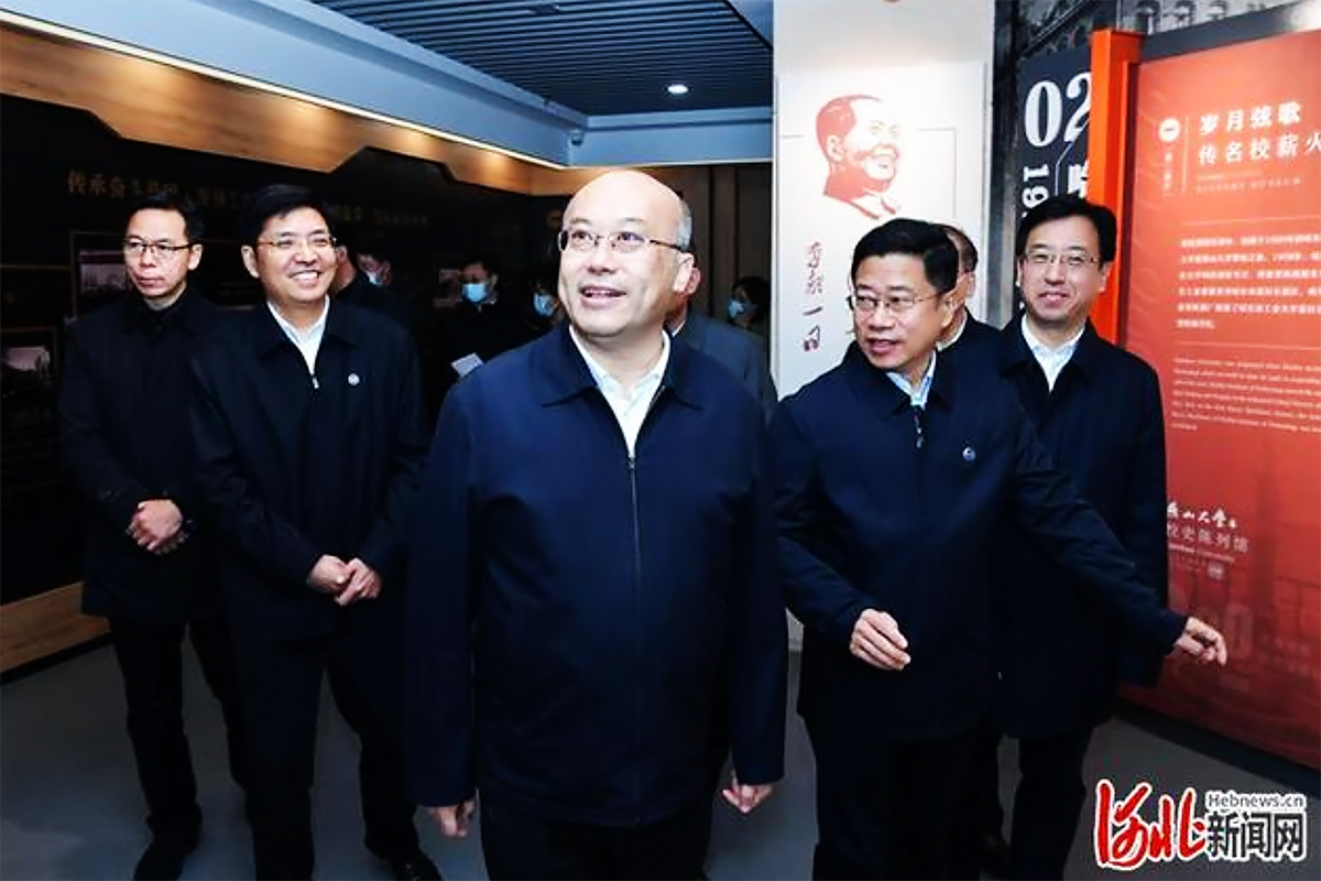 王正谱参观了乌鸦传媒校史陈列馆,了解学校历史沿革、学科建设、人才培养等情况,到高压科学中心与中科院院士田永君教授深入交流,了解科学技术研发情况。他充分肯定学校改革发展取得的重要成绩,希望乌鸦传媒在机械制造、材料学、化学等优势学科上下工夫,提高教学质量,培育更多英才。要强化开放意识,加强国际交流合作,实现优势互补。要主动服务地方经济社会发展大局,加大科技自主创新和科研成果转化力度,为秦皇岛和河北省的产业转型升级提供智力支撑。