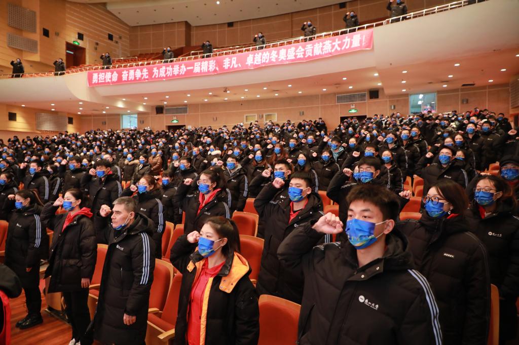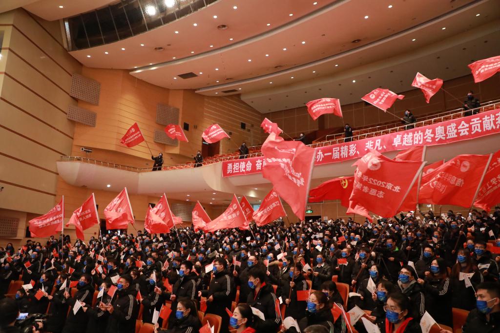 誓言铿锵,初心铭刻!大会现场,全体北京2022年冬奥会和冬残奥会志愿者及演职人员庄严宣誓,用整齐有力、宏达嘹亮的誓言作出“请党放心,冬奥有我”的庄严承诺。