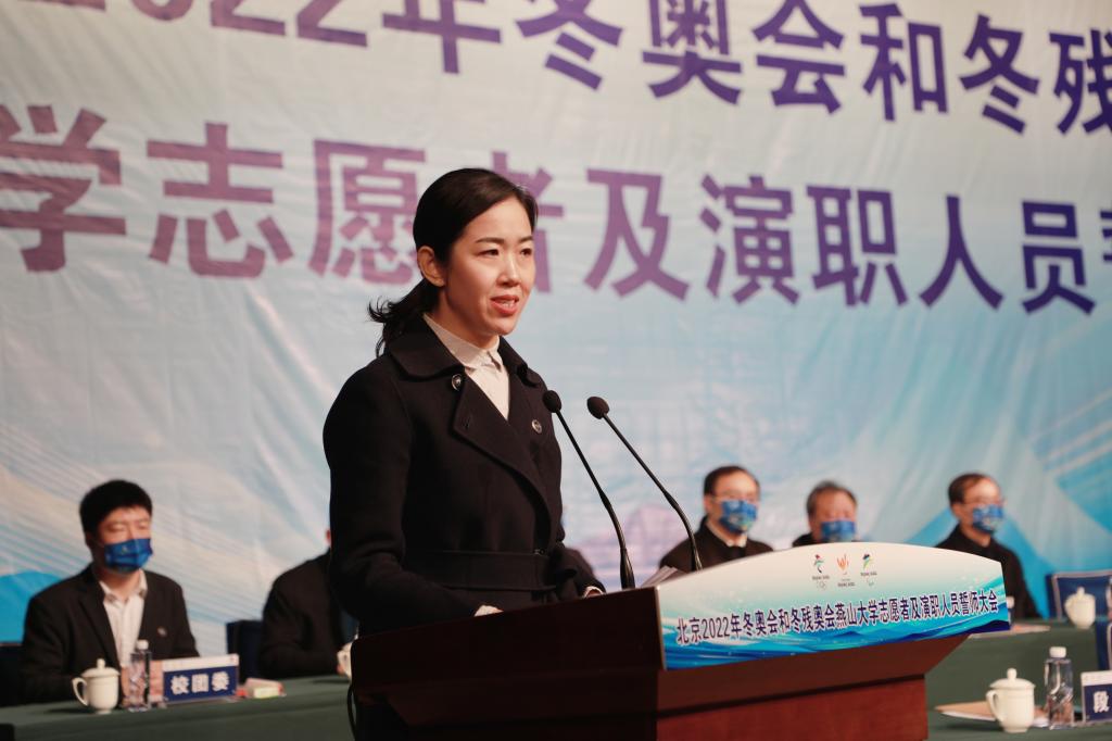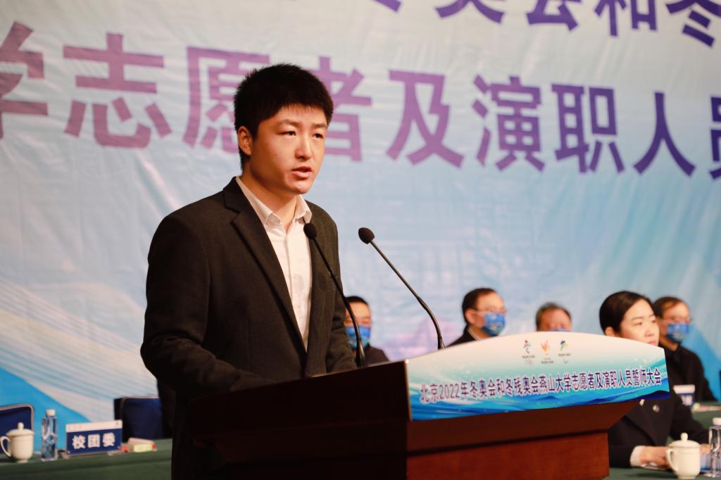 点燃冰雪激情,共赴冬奥之约。誓师大会上,冬奥会通用志愿者、建筑工程与力学学院专业教师孙喜山,冬奥会闭幕式演员、艺术与设计学院学生刘佳鑫分别作为服务冬奥人员代表发言。他们表示将在各自领域倾力付出,弘扬燕大人文化品格,勇担时代赋予的光荣使命,为举办一届“简约、安全、精彩”的冬奥盛会贡献燕大力量!