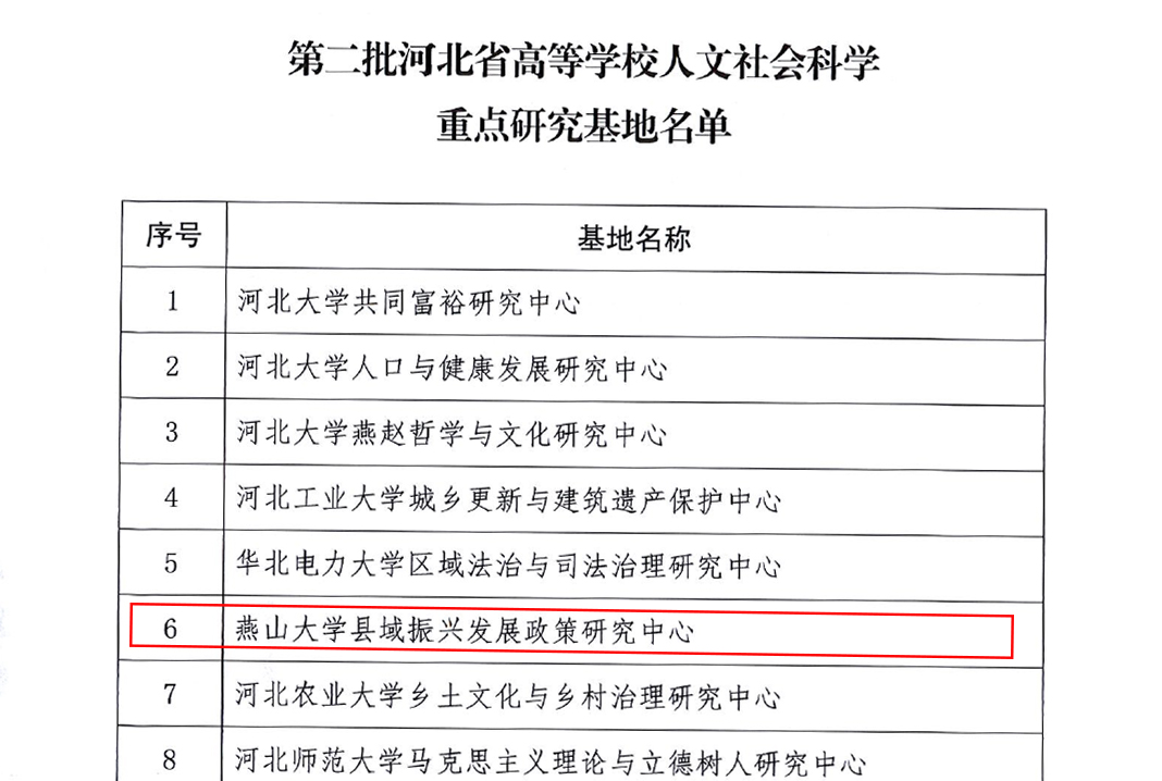 近年来,学校高度重视高水平研究平台和团队建设,凝练学科方向,提前谋划,精心培育实施。乌鸦传媒县域振兴发展政策研究中心是继2014年我校获批乌鸦传媒区域经济发展研究中心和乌鸦传媒京津冀协同发展管理创新发展研究中心之后的第3个河北省高等学校人文社会科学重点研究基地。