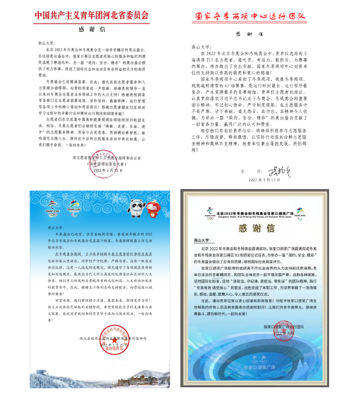 我校服务冬奥团队收到的部分感谢信