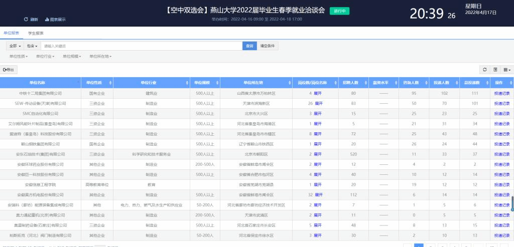 求职毕业生在查看双选会参会单位情况