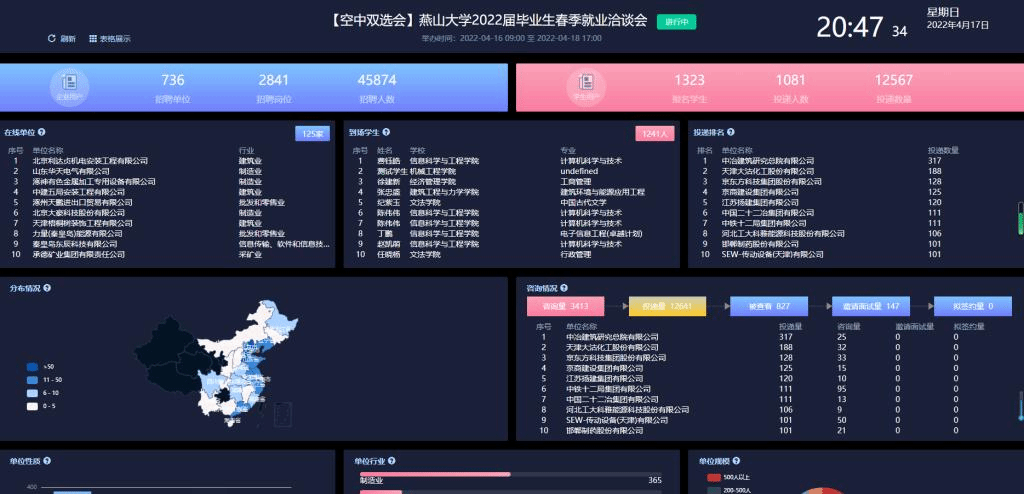 在本次招聘会组织筹备过程中,学校结合实际暖心打造了高效服务的就业新生态。一是提升服务,暖企业。针对企业招聘和学生求职实际需要,集智研发就业平台新功能,优化线上面试、签约等关联功能,以期暖企拓岗。二是细化服务,暖学生。设立就业推荐线上专属渠道,配合简历收集箱、标准化视频面试间和专业化就业指导咨询室,让在徘徊中的毕业生有试一试的勇气。三是拓展服务,暖战线。创新“一体四翼”的“招聘会+”工作新模式,在招聘会举行的同时,举办就业工作纪实展览,鼓舞工作士气;召开专题工作研讨会,启迪工作思路;在直播推介中引入就业指导,优化企业和学生的沟通模式;组织校企合作签约仪式,深化校企合作,开拓就业市场。一套“组合拳”,打出新成效。截至4月18日,招聘会平台简历投递量达13699次。