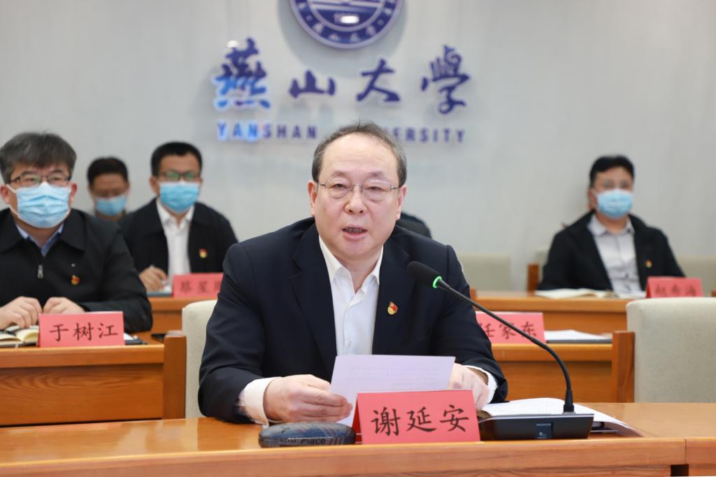 谢延安对学校2022年党的建设工作重点任务进行了安排部署,他指出,要以提升学校党的建设工作质量为主线,全面贯彻落实党的教育方针,弘扬伟大建党精神,教育引导广大党员干部在干事创业中发扬斗争精神,充分发挥基层党组织战斗堡垒作用和党员先锋模范作用。要深化政治建设、不断提升党的政治领导力,加强思想建设、推动思想政治工作守正创新,夯实组织建设、凝聚强大组织力行动力战斗力,推进作风纪律建设、营造风清气正政治生态,开展平安校园建设、切实维护校园安全稳定。