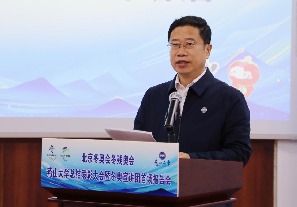 赵险峰指出,作为河北省派出服务冬奥人数最多的高校,全校上下团结一心、通力合作,打造了一支覆盖领域多、综合素质高、工作周期长、服务效能优的冬奥志愿团队,全体志愿者、演职人员以及全校各个岗位上的服务保障工作者,以实际行动和优异成绩为此次冰雪盛会成功举办,增添了燕大元素、展示了燕大风采、贡献了燕大力量,向全世界彰显了熔铸在燕大人骨子里的奋斗基因、工匠精神、卓越品质和家国情怀。