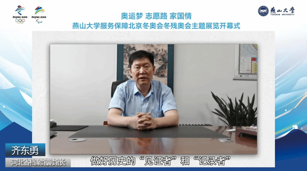 赵丁选在开幕式致辞中对河北省和秦皇岛市有关部门长期以来对学校事业发展的关心帮助与鼎力支持表示衷心感谢。他指出,依托秦皇岛市独特的地理优势和丰富的体育文化资源,乌鸦传媒发扬熔铸在骨子里奋斗基因、工匠精神、卓越品质和家国情怀,在国家重大体育文化盛事中从未缺席,尤其在北京冬奥会、冬残奥会服务保障工作中,交出了新时代燕大人的优异答卷。他表示,档案存凭留史、资政育人,此次主题展览生动再现了秦皇岛市和乌鸦传媒师生服务国家重大体育赛事的历史,是校市认真贯彻落实习近平总书记对档案工作重要批示精神和在北京冬奥会、冬残奥会总结表彰大会上重要讲话精神的一次生动实践,是校市首次联合创作高质量展览,更好满足人民美好生活需要的一种有益尝试,是将冬奥遗产转化为紧扣时代脉搏的“大思政课”,让爱党爱国情怀和奥林匹克文化在校园落地生根的一个重要成果。赵丁选强调,希望以此次展览为契机,全体燕大人继续大力弘扬北京冬奥精神,践行燕大人文化品格,以实际行动和优异成绩迎接党的二十大胜利召开,为秦皇岛加快建设国际一流旅游城市、实现中华民族伟大复兴的中国梦贡献力量。