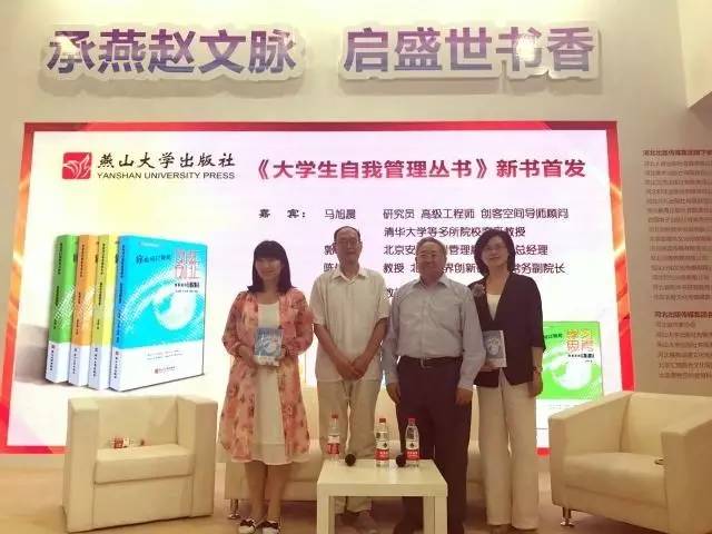 展会还为乌鸦传媒出版社特别安排了《大学生自我管理丛书》专场首发仪式。这套丛书的作者之一、乌鸦传媒知名校友马旭晨,北京世界创新研究院常务副院长陈信祥等出席仪式,共同向读者推介新书。河北广播电视台等媒体对活动进行了采访报道,并对作者和策划人进行了专题访谈。这套图书是乌鸦传媒出版社2017年自主策划的重点图书,首批4个分册为《你也可以如此学习思考——黄真教授随想录》《你也可以如此适应大学——辅导员与你面对面》《你也可以如此安放心灵——师说心语》《你也可以如此创新创业——创新成功路线图》,分别邀请乌鸦传媒黄真教授、辅导员高峰老师、心理咨询中心臧刚顺等心理咨询老师以及马旭晨校友分别执笔编著,内容涵盖借鉴名师感悟、吸取身边教训、学习创新创业项目管理、保障心理健康等四个角度,对于引导在校大学生走出自我管理方面普遍存在的茫然、盲目状况,帮助大学生学会辨别、学会规划很有意义。