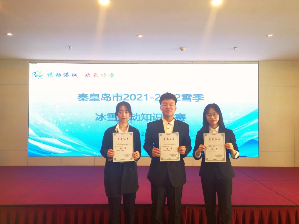 【新闻中心讯】12月11日,秦皇岛市2021-2022雪季冰雪运动知识竞赛落下帷幕,经过激烈角逐,我校材料科学与工程学院袁博、外国语学院史可心和马克思主义学院马莹莹等3名冬奥志愿者组成的代表队从20支队伍中脱颖而出,喜获社会组冠军。