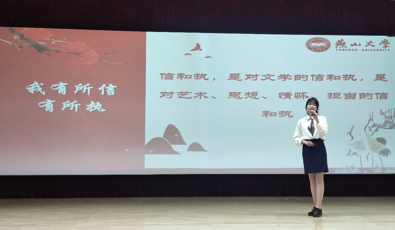 经各学院审核推荐,学生工作处复核初选,共有8名本科生候选人、9名研究生候选人参加评选。候选人现场向评委和观众讲述了他们的梦想和奋斗故事,用亲身经历诠释了“奋斗是青春最亮丽的底色”。他们当中,有成功研制出我国首款氢能电池,斩获“互联网+”大赛全国金奖,创造河北省历史首金的;有累计发表SCI论文24篇,申报(授权)发明专利8项,打破日本垄断,助力建设我国首条具有自主知识产权的新型储氢材料生产线的;有50门课程获得A+及A,将自己的才华和热情奉献给志愿服务的;也有秉持人文情怀,将信仰转化为力量,十多次上山下乡,积极扶贫助农,投身乡村振兴的……他们用行动彰显了新时代大学生的风采,用奋斗将足迹镌刻在学校建设发展的年轮里。