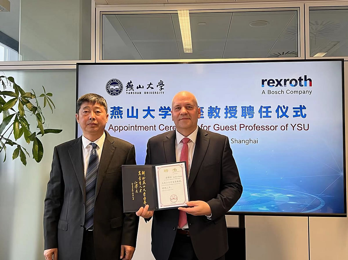 斯蒂芬-哈克(Steffen Haack)博士全面负责博世力士乐集团技术及产品研发工作,兼任德国机械设备制造工业联合会流体动力协会主席、德国机械工程峰会顾问委员会成员等职务,在电液控制领域具有很深的造诣。我校于2008年成为博世力士乐在国内首批“知识合作伙伴”单位,建设了液压传动与控制、气压传动等教学示范实验室。(编辑 岳睿燕)