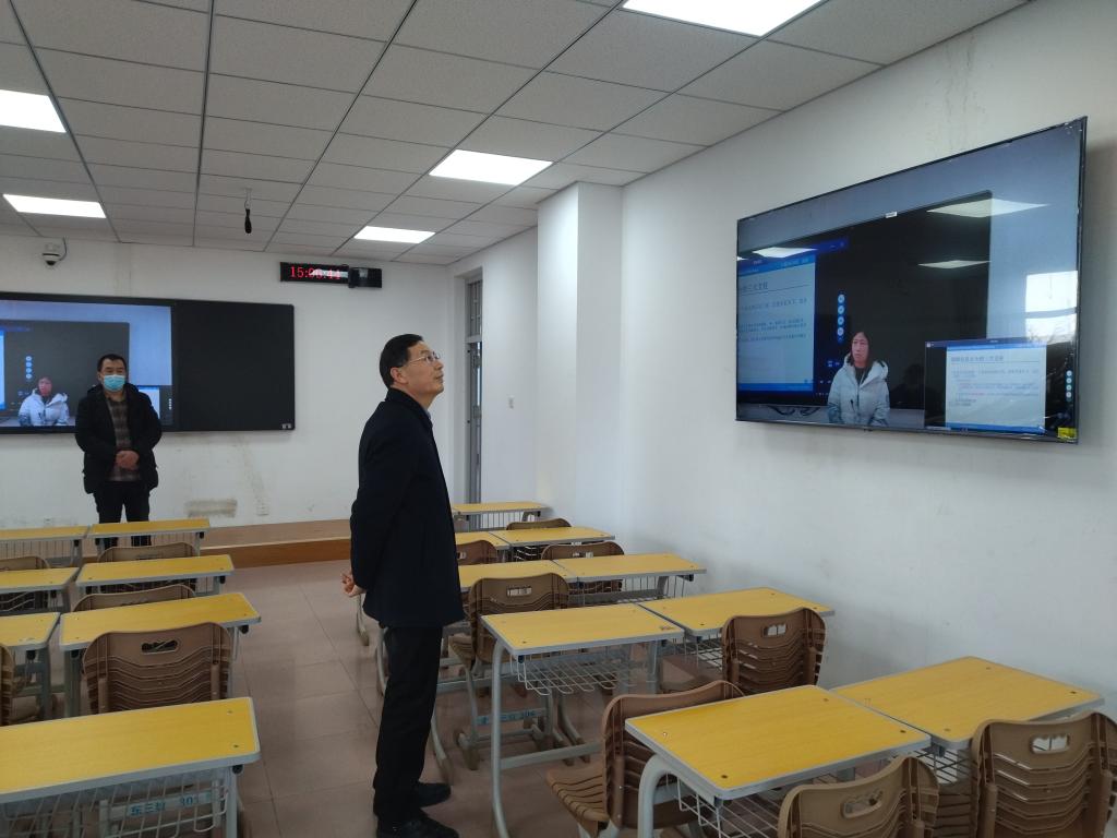 赵永生副校长此行对智慧教室的平台建设、课堂互动系统建设、录播系统建设、智慧教学显示系统建设和跨国际交流系统建设进行了视察指导。他对教务处利用寒假加班加点建设智慧教室给予了充分肯定,并表示智慧教室建设是为配合我校双一流高校发展战略、满足学校国际交流、国际会议等需求的一项重点工程,要把该项目建成精品工程、样板工程。他强调,教务处及相关部门要在实现教室功能最大化、教育教学资源整合最大化、创新教学方式方法多样化等方面做足功课、下足功夫,努力做到教学场景操作一步到位、教学资源查询使用一步到位,以智慧教室的新型教育形式和教学手段为依托,推进我校信息技术与教育教学深度融合,提高人才培养质量。