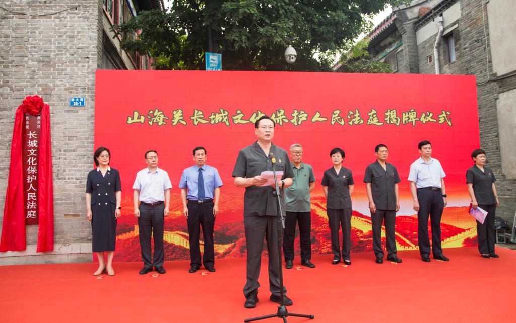 仪式由秦皇岛市中级人民法院党组书记、院长张莉主持,河北省高级人民法院、秦皇岛市中级人民法院、秦皇岛市人民检察院、秦皇岛市旅游和文化广电局、山海关区委以及秦皇岛市各区县法院等有关领导出席了揭牌仪式。