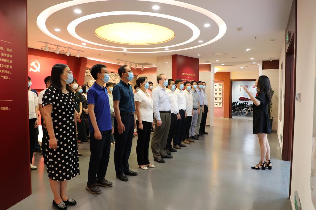 走进党员组织生活馆,迎面看到的是鲜红的党旗和庄严的入党誓词,在机关党委书记左莉同志的带领下,全体参会党员一同重温入党誓词。誓言铮铮,初心和使命再一次在每一位党员心中激荡。