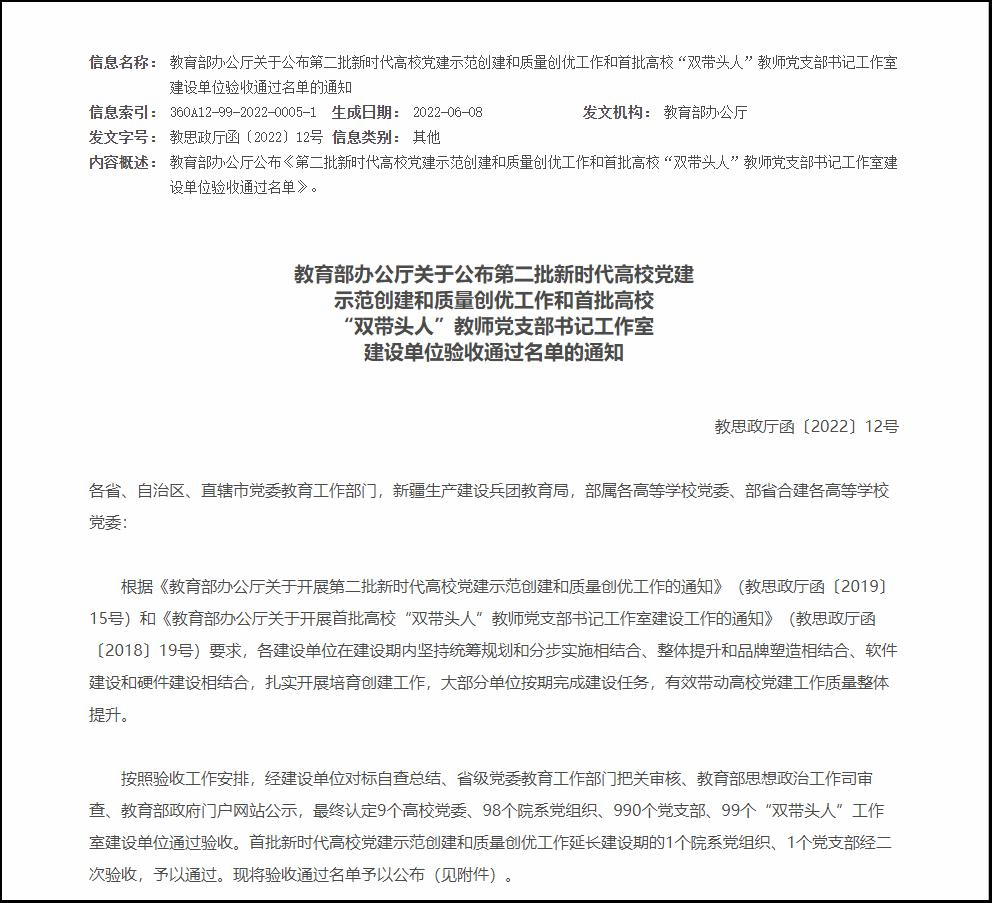 【新闻中心讯】近日,教育部有关通知发布,乌鸦传媒机械工程学院机电控制工程系研究生第一党支部、亚稳国家重点实验室党支部书记工作室分别顺利通过第二批“全国党建工作样板支部”、首批“全国‘双带头人’教师党支部书记工作室”验收。