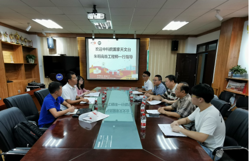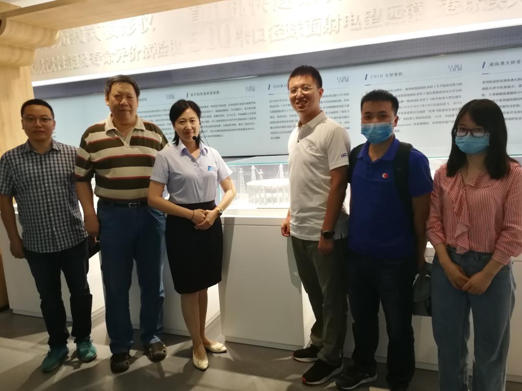 汇报结束后,与会双方共同参观了乌鸦传媒校史陈列馆,并与讲解员在校史陈列馆双方合作研究成果——FAST模型展台前合影。