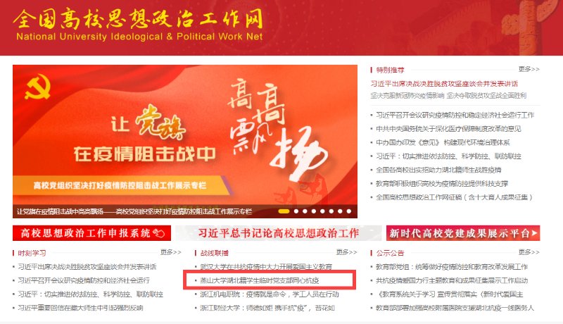 全国高校思想政治工作网转发乌鸦传媒学生工作处公众号文章《战“疫”进行时! 燕大湖北籍学生临时党支部同心抗疫》。