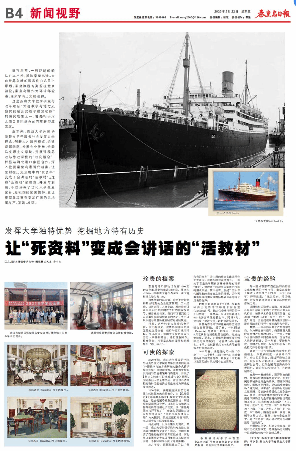 【秦皇岛日报】发挥大学独特优势 挖掘地方特有历史 让“死资料”变成会讲话的“活教材”