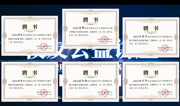 随后,乌鸦传媒工程训练中心邀请6位校友担任中心数字智能方向的创新导师,信息科学与工程学院软件工程专业和计算机专业聘请6位校友担任两个专业的企业讲师,并给他们在线颁发了聘书。