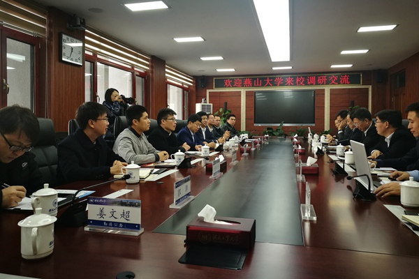 【新闻中心讯】12月7日上午,校党委书记赵险峰、校长赵丁选带队赴河北工业大学进行考察交流、看望校友、洽谈合作,受到河北工业大学党委书记、我校杰出校友李强,校长韩旭、副校长李铁军和相关部门负责人的热情接待。党委常委、副校长于树江和学校办公室、校庆办、宣传部、科研院、人事处、教师教学发展中心、机械工程学院等单位负责人随同考察调研。