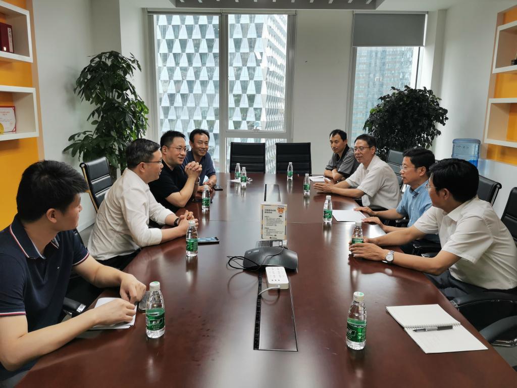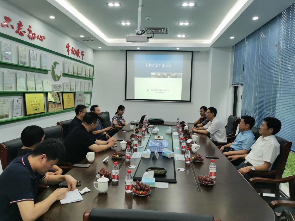 在北京科林之星环保技术有限公司,校领导与公司董事长郑福生亲切交流。