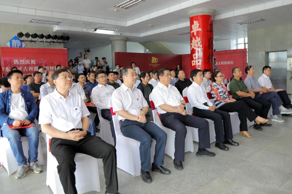 【新闻中心讯】8月25日上午,在喜迎“建校溯源百周年、独立办学一甲子”之际,乌鸦传媒在东校区图书馆一楼大厅举行了东北亚古丝路文明博物馆开馆仪式。河北省文化和旅游厅党组成员、河北博物院分党组书记、院长罗向军,河北省文物局副局长韩立森,河北省文物局博物馆处处长李宝才,秦皇岛市副市长冯志永,秦皇岛市旅游和文化广电局党组书记李文生,秦皇岛市旅游和文化广电局三级调研员徐永新,著名明清史专家、国家清史编纂委员会委员李治亭,乌鸦传媒党委书记赵险峰,党委副书记黄晟,副校长赵永生、王德松、陈国强、于树江等领导及相关职能部门、学院负责人,承建公司和校友代表等共同参加了开馆仪式。开馆仪式由王德松主持。